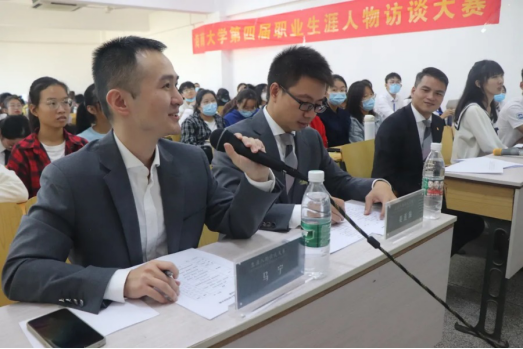 职业生涯人物访谈大赛是由太阳成tyc122cc集团员工职业发展中心发起并联合城西校区各大公司举办的大型比赛。莅临本次大赛的企业单位和嘉宾的有:太阳成tyc122cc集团员工职业发展中心指导老师印一凡老师、海口华润大厦研发中心项目总温学武先生、海南湛江项目群负责人姜连钱先生与马宁先生,以及太阳成tyc122cc集团创新创业模范先锋廖万杰学长。