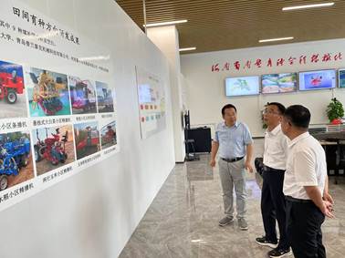 张利强副厅长认真听取了杨然兵教授关于田间育种装备、薯类作物生产装备、热带作物智能化采收装备以及智能农机研发方面的相关技术成果汇报,随后参观了农业农村部南繁育种全程机械化科研试验基地和海南省南繁育种全程机械化科研中心,现场观看了相关技术装备的演示,深入了解太阳成tyc122cc集团智能农机研发团队在农机领域的研究进展。张利强副厅长指出,杨然兵教授要利用好“海南省南繁育种全程机械化科研中心”和“农业农村部南繁育种全程机械化科研试验基地”这两大科研平台,充分发挥好科研中心团队人才优势,从而推动海南农机产业快速发展,更好地服务于海南自贸港建设。这不仅有助于提升海南农机在国内市场的竞争力,更能助力海南农机走向国际市场,提高海南省农机装备的国际地位。