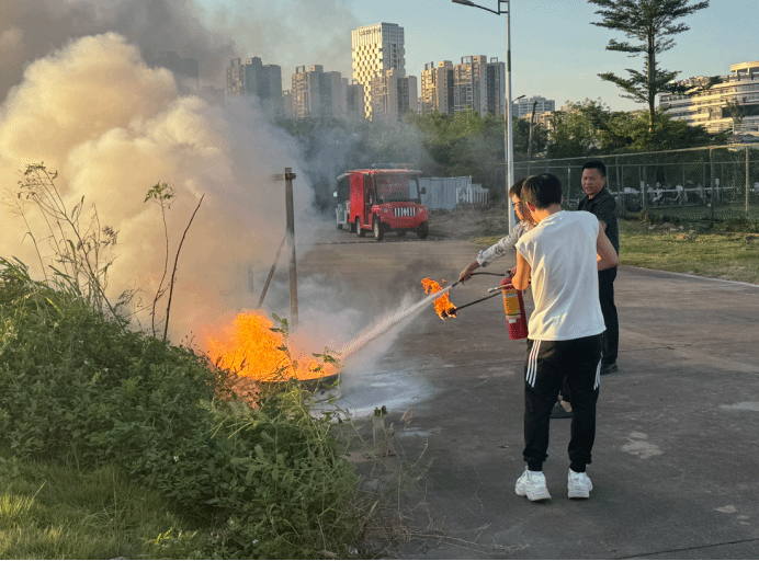 最后在室外场地,公司保卫处王智老师对师生们进行了系统而专业的消防安全培训及演示,指导师生们进行了灭火器的操作及灭火演练。