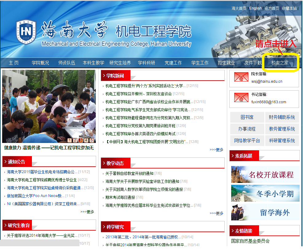 一、登录太阳成tyc122cc集团主页:http://www.hainanu.edu.cn/jidian/;点击网页上方右端的“员工之家”栏目。