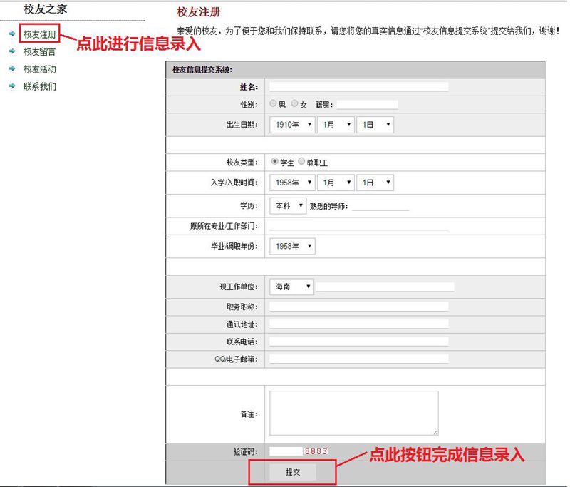 二、进入“员工之家”界面,点击“员工注册”按钮,根据提供表格尽量将个人信息填写完整,然后点击表格下方的“提交”按钮,完成信息录入。