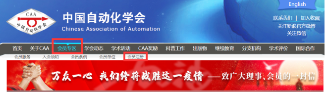 1. 登陆中国自动化学会官网:http://www.caa.org.cn/,选择“会员专区”进入“会员注册”;或直接进入到中国自动化学会会员系统:http://member.caa.org.cn/