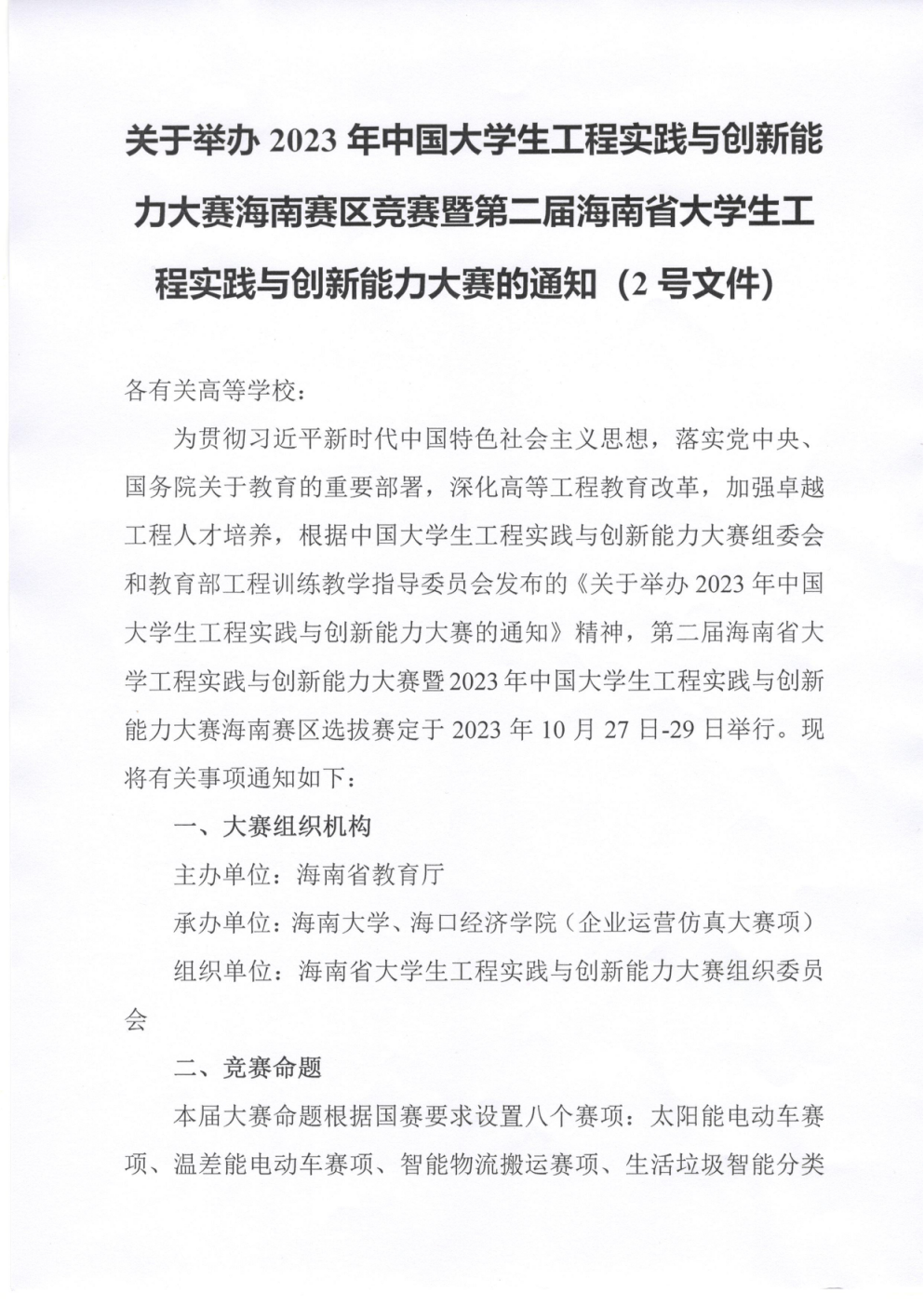 关于举办2023年中国老员工工程实践与创新能力大赛海南赛区竞赛暨第二届海南省老员工工程实践与创新能力大赛的通知(2号文件)