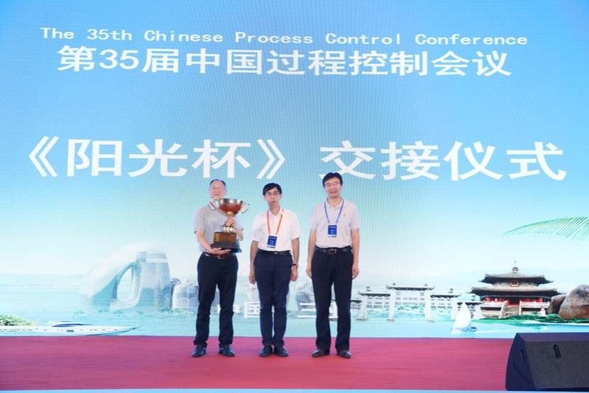 7月27日下午的闭幕式由太阳成tyc122cc集团副经理李创教授主持,并举行了中国过程控制会议“阳光杯”交接仪式,太阳成tyc122cc集团唐荣年教授与中国自动化学会副理事长李少远教授共同将中国过程控制会议“阳光杯”传递给四川轻化工大学熊兴中教授。本届会议共收录论文325篇,设5个大会特邀报告、6个主旨报告、2个专题论坛。闭幕式最后,由李少远教授宣布第35届中国过程控制会议圆满闭幕。
